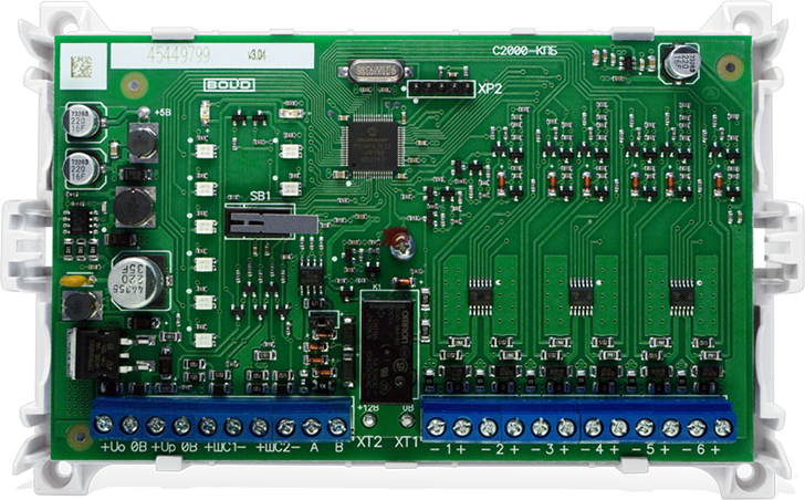 Управление шестью исполнительными устройствами (световые и звуковые оповещатели, электромагнитные замки, модули порошкового или аэрозольного пожаротушения, видеокамеры и др.) по интерфейсу RS-485
